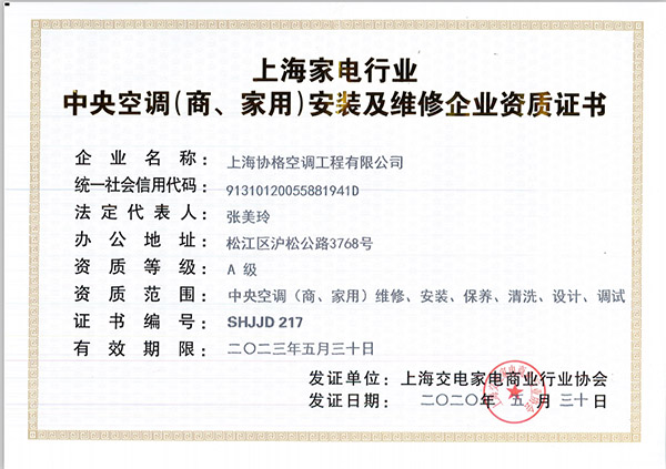 上海協格機電科技股份有限公司于2003年成立,是一家專業從事空調設計、銷售、安裝、維修、保養為一體的家用和商用空調專業公司。是格力空調上海地區的特約經銷商和技術服務中心,是上海市家用電器安裝、維修以及資質企業。公司擁有暖通技術、高級工程師、工程安裝等多方面專業人才。公司常年以來堅持客戶利益至上的原則,設計、選材、安裝,力求精益求精,是上海地區格力授權服務商。